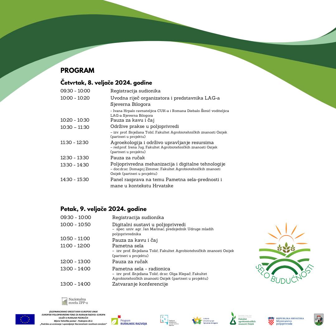 Konferencija će se baviti konceptom Pametnih sela. Dođite i sudjelujte na različitim predavanjima s temama održivih praksa u poljoprivredi, agroekologije, digitalizacije u poljoprivredi, panelu i radionici.